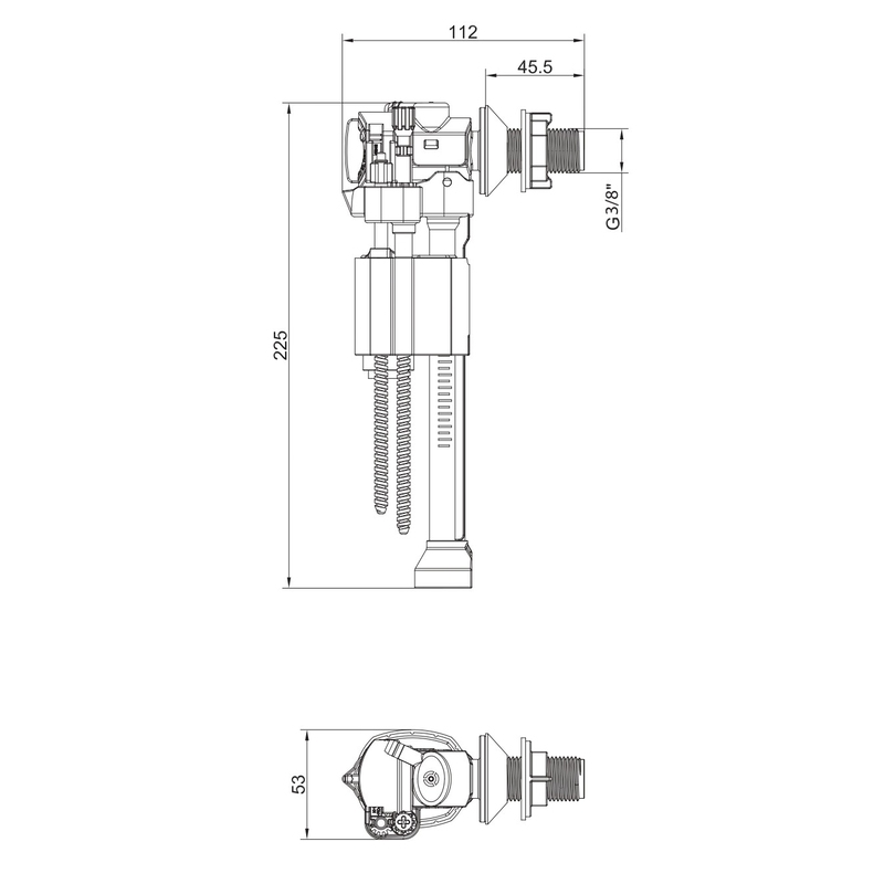 Арматура наповнювальна Koer KT-0107-3/8" з боковим підведенням та латунним різьбленням 3/8"